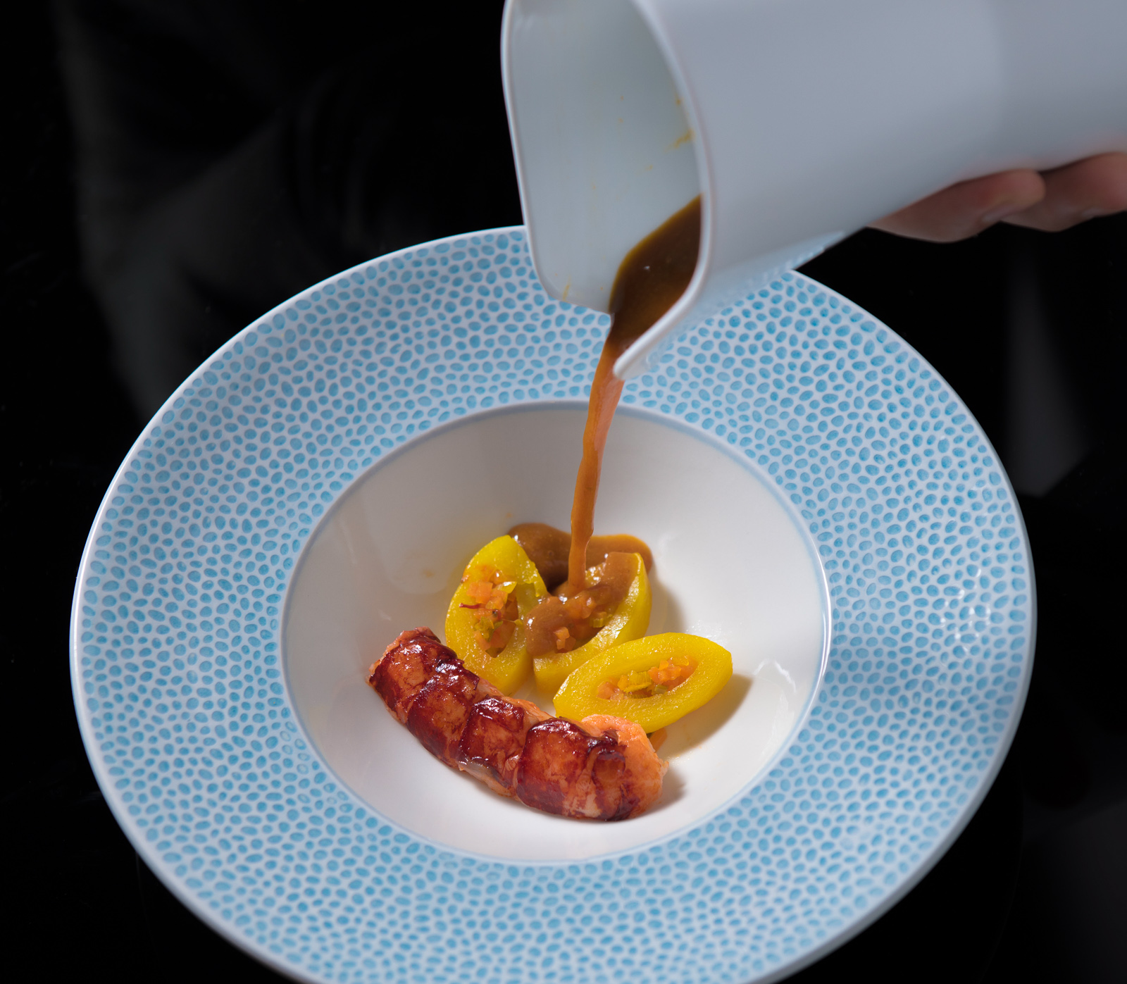 Gotował Arek Wilamowski z restauracji Chłodna 15 i zrobił genialną robotę. Na przykład tak doskonałej, głębokiej w smaku i wielowymiarowej bouillabaisse nie jadłam nawet w jej mateczniku, czyli w Marsylii! A wierzcie mi – szukałam tej najlepszej z dużym poświęceniem, bo przecież jak zwykle pisałam dla Was przewodnik. To było prawdziwe cudo i przydarzyło mi się… w Łodzi. I oczywiście, że cały nasz stolik poprosił o dokładkę! Ta zupa to doświadczenie z kategorii niezapomnianych. Trafiły do niej: okoń, barwena, dorada, dorsz, tuńczyk, węgorz, turbot, sola, krab królewski i jeszcze kilka innych. Nie wiem czy kiedykolwiek zjem lepszą bouillabaisse. Bardzo możliwe, że nie.