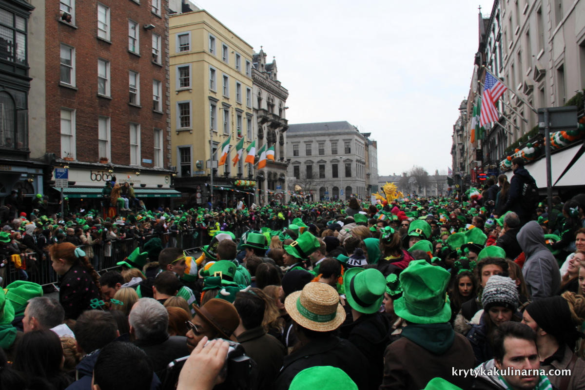 W dzień św. Patryka wszystko jest zielone, a miasta i miasteczka ogarnia amok. Większość osób, jeśli nie jest przebrana, to chociaż ma jakiś zielony akcent. Wrzucając ten post wciąż mam na sobie rajstopy w koniczynki. Jak wszyscy, to wszyscy. Kolejność zdarzeń jest taka: najpierw parada, a później klasyczna bania do rana. Ulicami płynie rzeka zielonych czapek, a im bliżej do wieczora, tym głośniej i weselej. Puby są pełne i znalezienie miejsca siedzącego graniczy z cudem, ale stojące zdają się nie kończyć nigdy. Knajpy w magiczny sposób wchłaniają kolejnych spragnionych piwa gości, natomiast prawie wcale ich nie wypluwają. Ciekawe zjawisko.